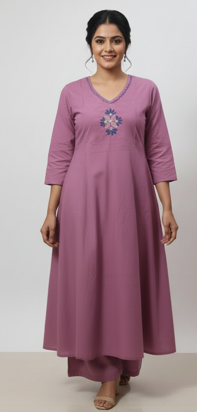 Coord Set - Embroidered Pink